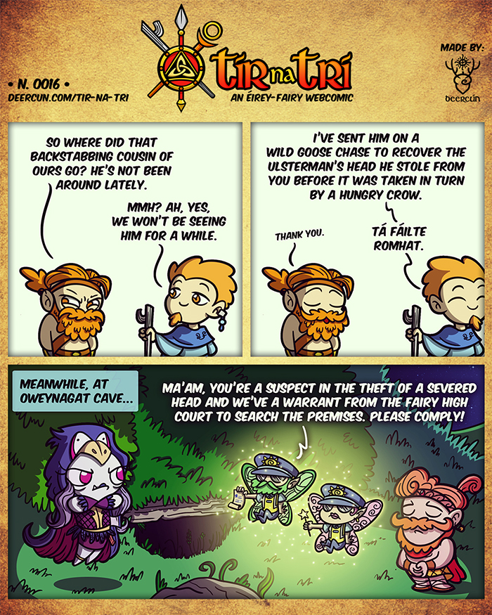 Will the Fairy Guards be able to pick up the trail of the missing head that went cold so long ago? Is Fergus being sent on a purposeless goose hunt? Is the Morrígan the first and foremost suspect in this crime?